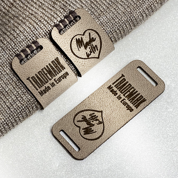 Personalizovaný štítok EP-M65 z pravej kože na oblečenie, tašky, obuv a rôzne odevné doplnky.