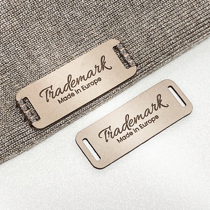 Personalizovaný štítok EP-M69 z pravej kože na oblečenie, tašky, obuv a rôzne odevné doplnky.