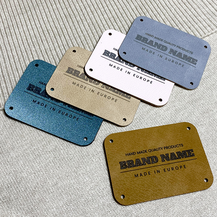 Prispôsobenie Etikety z umelej kože Model EP-M123 je rýchle a jednoduché pomocou grafického buildera si môžete zvoliť farbu umelej kože, pridať vlastné logo, grafiku s komplexným dizajnom alebo vlastný text, ako napríklad názov značky, slogan, názov výrobcu a krajinu pôvodu výrobku.