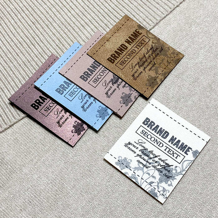 Prispôsobenie Etikety z umelej kože Model EP-M141 je rýchle a jednoduché pomocou grafického buildera si môžete zvoliť farbu umelej kože, pridať vlastné logo, grafiku s komplexným dizajnom alebo vlastný text, ako napríklad názov značky, slogan, názov výrobcu a krajinu pôvodu výrobku.