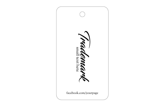 Značkový štítok z lesklého bieleho kartónu vrátane tesnenia so šnúrkou na zavesenie oblečenia alebo obuvi. Tento typ visačky je vyrobený z vysokokvalitných materiálov a využíva najmodernejšie technológie digitálnej tlače a povrchovej úpravy.