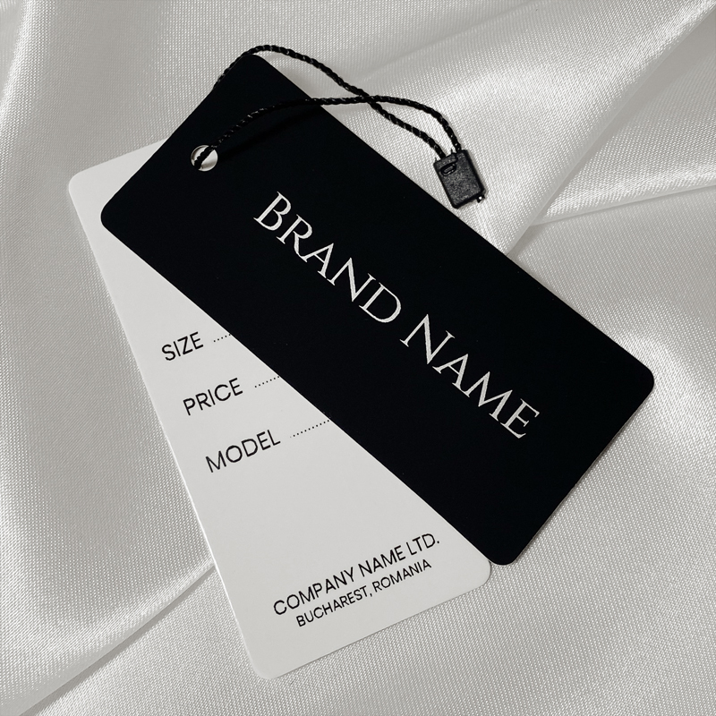 Sada pozostáva z 2 štítkov z čierneho a bieleho kartónu, z laminovaného kartónu so strieborným nápisom a plastovej pečiatky s čiernou šnúrkou v cene. Tento typ visačky je vyrobený z vysokokvalitných materiálov a využíva najmodernejšie technológie digitálnej tlače a povrchovej úpravy.
