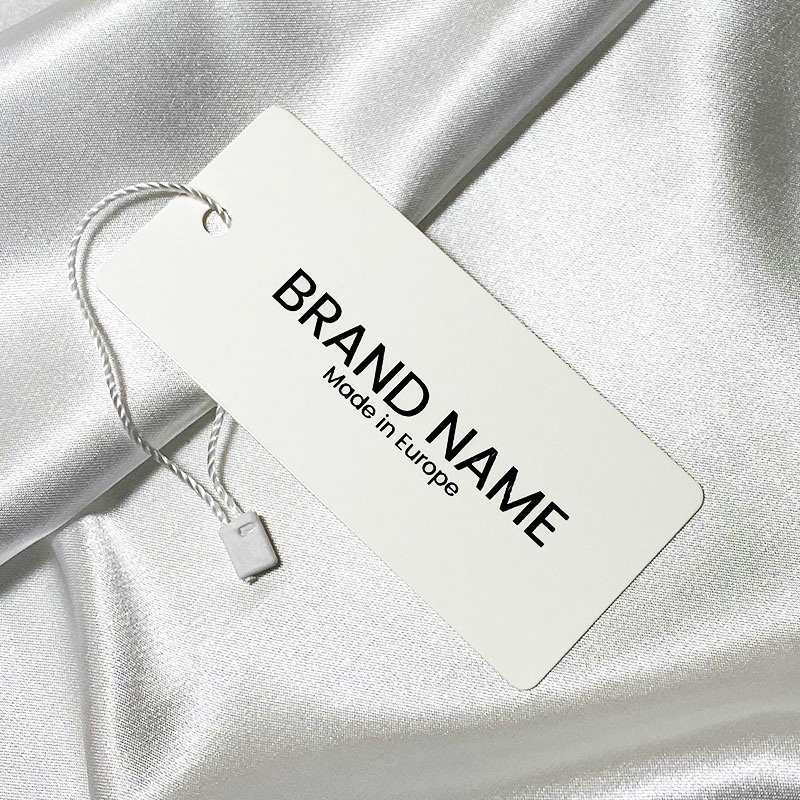 Vlastná etiketa na oblečenie s bielou šnúrou vyrobená na zákazku z hrubého kartónu, s potlačou textu alebo loga značky Tento typ visačky je vyrobený z vysokokvalitných materiálov a využíva najmodernejšie technológie digitálnej tlače a povrchovej úpravy.
