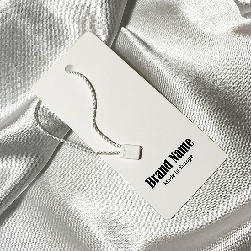 Vlastná visačka so šnúrkou vhodná na oblečenie, obuv, šperky a rôzne odevné doplnky, s potlačou názvu značky a loga. Tento typ visačky je vyrobený z vysokokvalitných materiálov a využíva najmodernejšie technológie digitálnej tlače a povrchovej úpravy.