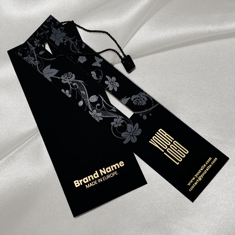 Elegantná sada kartónových visačiek s čiernou plastovou pečaťou vyrobená z vysokokvalitných materiálov na rôzne druhy textilu, ako sú dámske odevy, šaty, pánske odevy, nohavice, bundy atď. Tento typ visačky je vyrobený z vysokokvalitných materiálov a využíva najmodernejšie technológie digitálnej tlače a povrchovej úpravy.