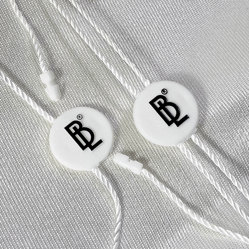 Plastové tesnenie ST-M33 s okrúhlym tvarom, veľmi elegantné a krásne prispôsobené na dvoch stranách s názvom značky alebo emblémom, vhodné na oblečenie, obuv, tašky atď. Tento typ plomby je vyrobený z vysokokvalitných materiálov s použitím najmodernejších technológií v tejto oblasti