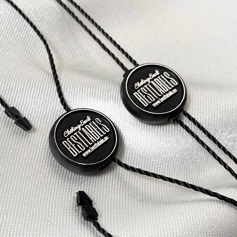 Plastová pečať s okrúhlym tvarom ST-M81, prispôsobená logu/obrázku a textu/krátkemu výrazu, vhodná pre rôzne výrobky, ako napríklad: oblečenie, obuv, tašky, šperky a rôzne doplnky. Tento typ plomby je vyrobený z vysokokvalitných materiálov s použitím najmodernejších technológií v tejto oblasti