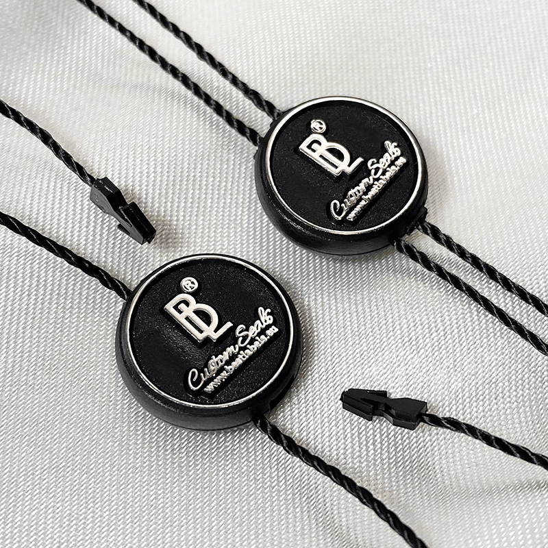 Plastová pečať s elegantným dizajnom a okrúhlym tvarom ST-M86, ktorú možno na dvoch stranách upraviť názvom značky alebo emblémom/obchodnou značkou, je ideálna pre výrobky, ako je oblečenie, tašky, obuv. Tento typ plomby je vyrobený z vysokokvalitných materiálov s použitím najmodernejších technológií v tejto oblasti