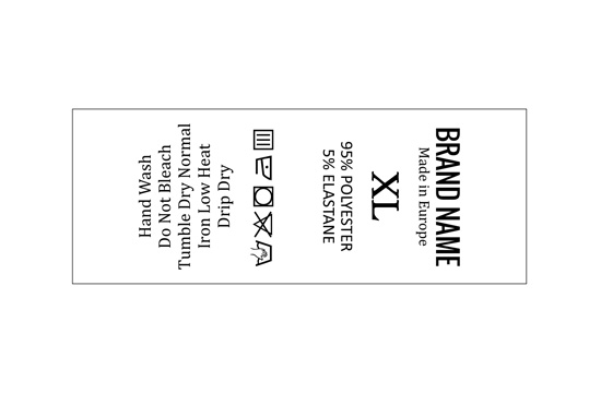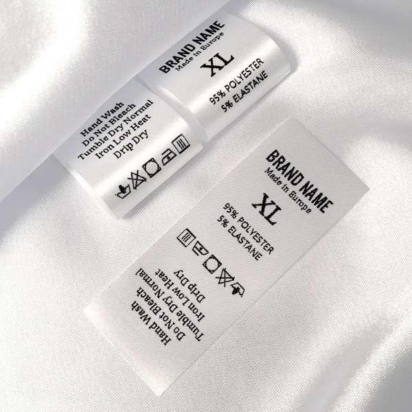 Saténový štítok na pranie s indikátorom veľkosti, prispôsobený logu, názvu značky a pokynom na starostlivosť a pranie. Tento typ textilnej etikety sa vyrába pomocou najmodernejších technológií v oblasti digitálnej tlače na textilný podklad. Etikety sa tlačia na špeciálny satén termotransferovou metódou, ktorá zabezpečuje pôsobivú kvalitu tlače a vysokú odolnosť voči praniu.