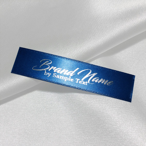Textilná etiketa so striebornou potlačou na saténe, model TL-73 Fashion Style, na oblečenie a rôzne odevné predmety. Tento typ textilnej etikety sa vyrába pomocou najmodernejších technológií v oblasti digitálnej tlače na textilný podklad. Etikety sa tlačia na špeciálny satén termotransferovou metódou, ktorá zabezpečuje pôsobivú kvalitu tlače a vysokú odolnosť voči praniu.