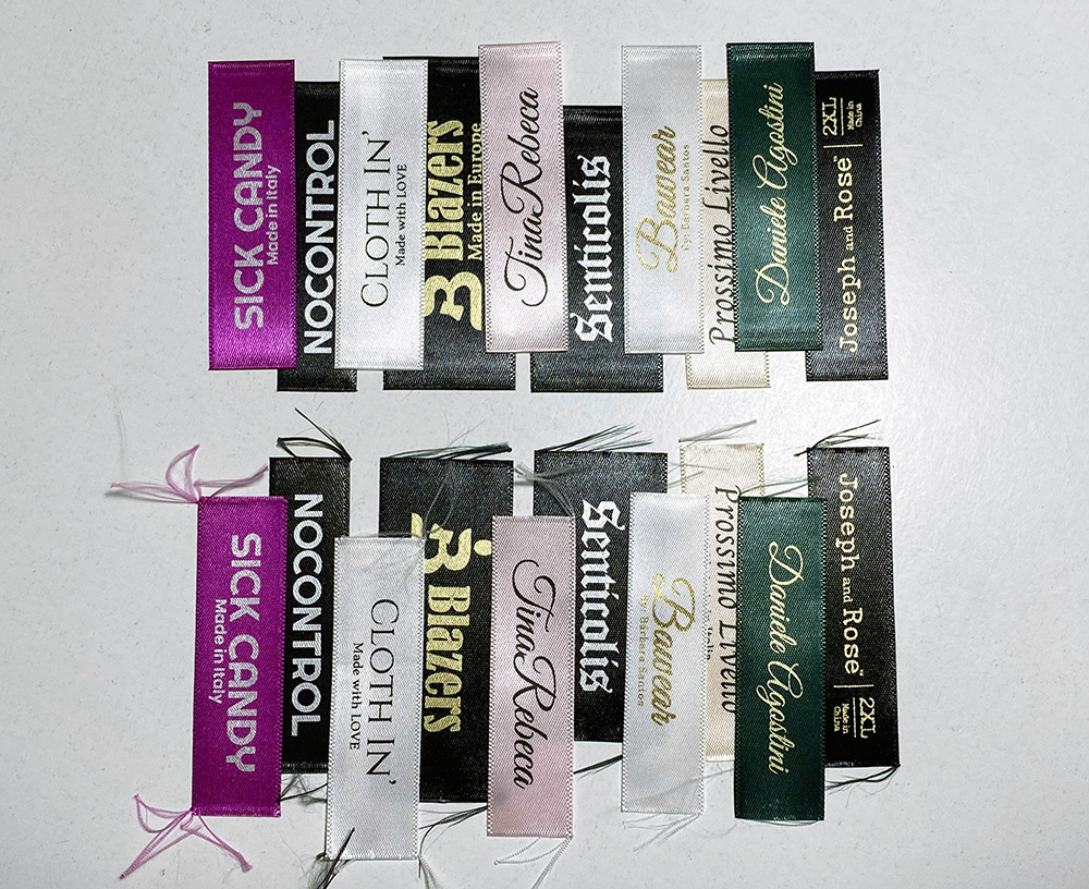 Vlastný TL-M137 štítkov s potlačou na saténovej tkanine, vhodný pre oblečenie, odevné doplnky a iné textilné výrobky.