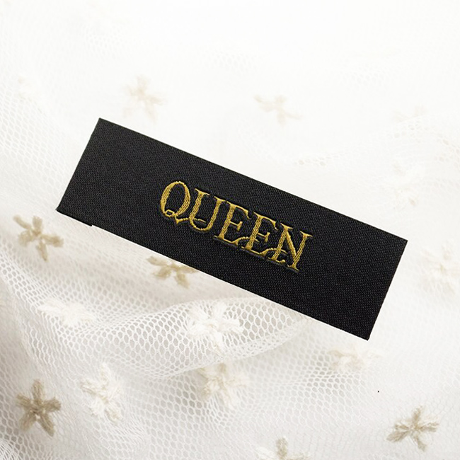 Textilný štítok na oblečenie alebo rôzne odevné predmety, vyrobený z polyesterových vyšívacích nití, prispôsobený podľa návrhu zákazníka v rôznych farbách. Tento typ tkaného štítku je vyrobený z vysokokvalitných materiálov za použitia najmodernejších technológií digitálnej výšivky na priemyselnej úrovni.