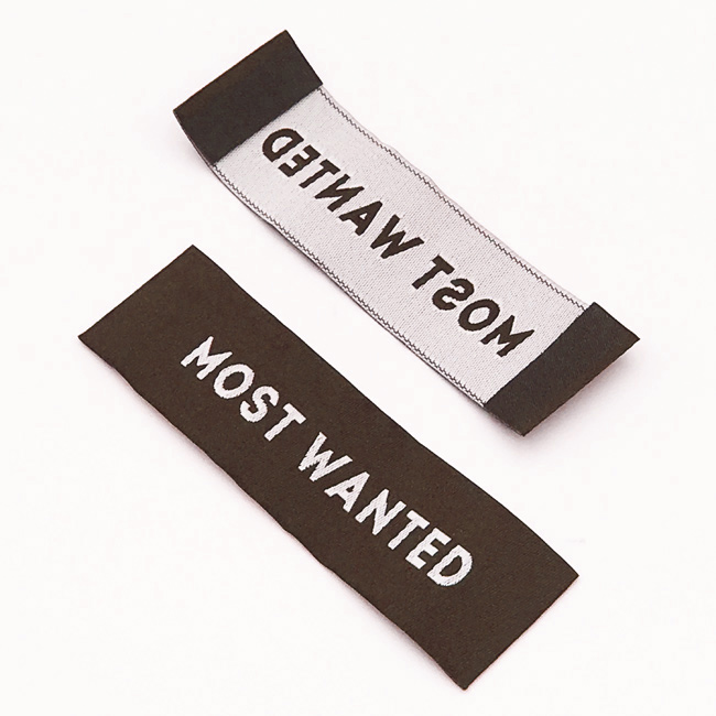 Tkaná etiketa vhodná na rôzne odevy alebo iné textilné výrobky, vyrobená z damašku, so zahnutými okrajmi. Tento typ tkaného štítku je vyrobený z vysokokvalitných materiálov za použitia najmodernejších technológií digitálnej výšivky na priemyselnej úrovni.