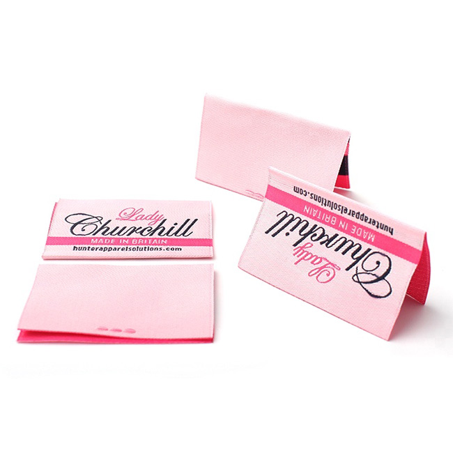 Textilný štítok preložený v strede, personalizovaný vyšívanými nápismi Digital High Density.