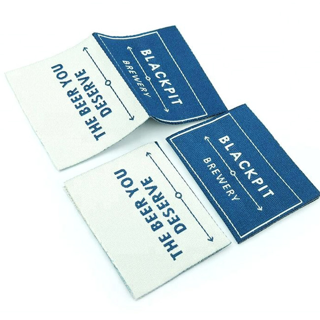 Textilný štítok preložený v strede, personalizovaný vyšívanými nápismi Digital High Density.